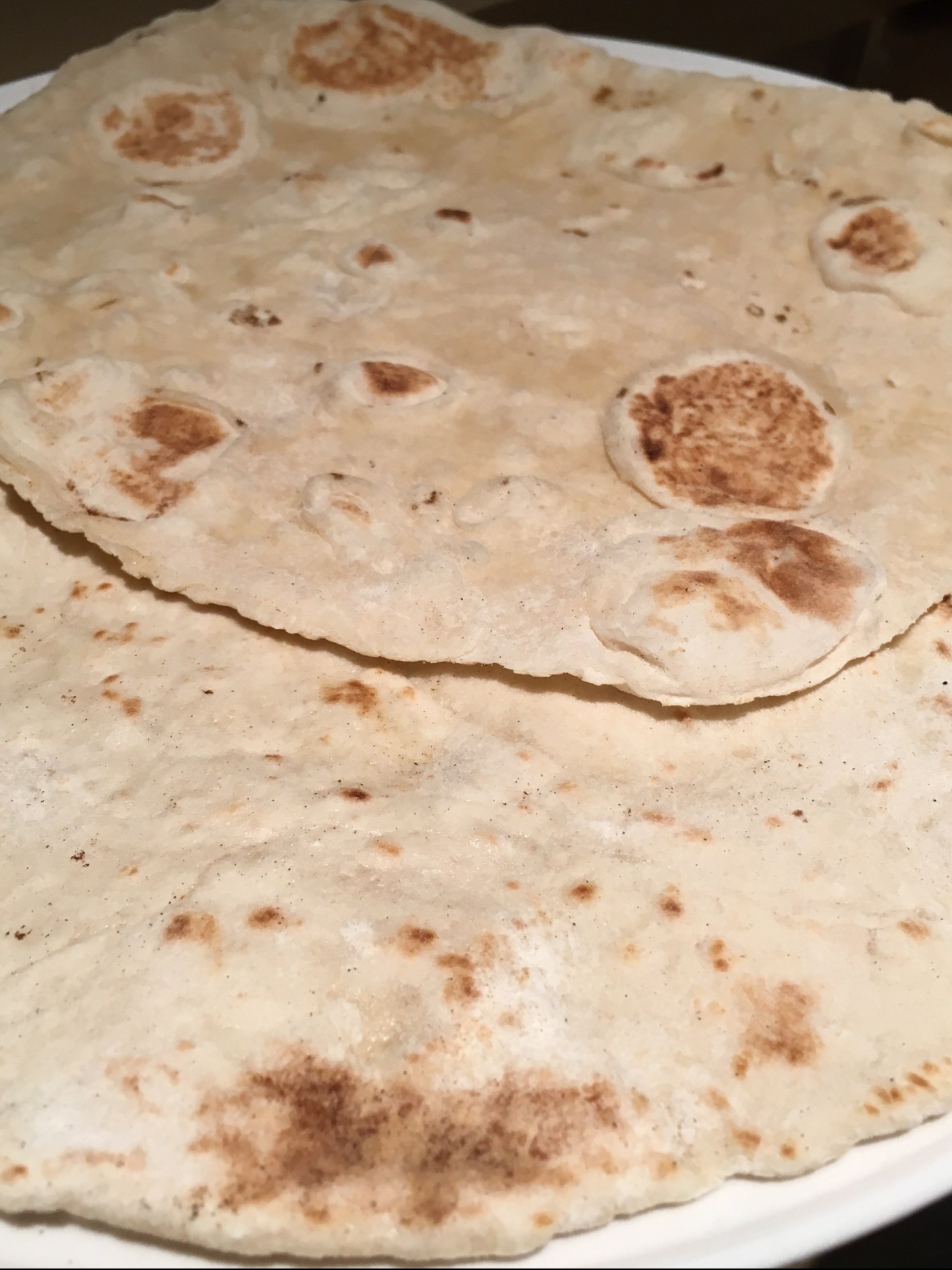 Pour 12 tortillas (recette tirée du livre “Pains, brioches et autres recettes du boulanger” adapté à mon robot, le Cooking chef mais elle peut très bien se faire avec un autre robot ou à la main, la pâte n’a pas besoin d’être beaucoup pétrie):