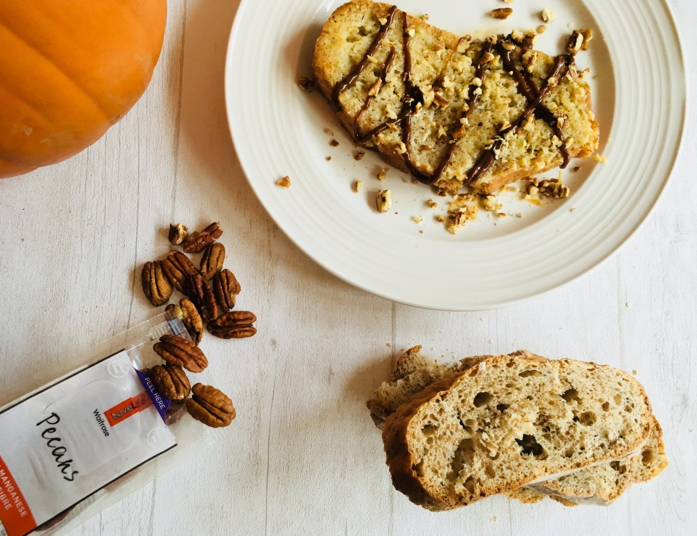 « Tartine-moi », voici le sympathique thème choisi par Bénédicte! Elle souhaite que nous la fassions craquer avec des tartines salées, sucrées, chaudes, froides… bref, nous avions l’embarras du choix. Seules contraintes, utiliser du pain ou de la brioche uniquement (pour moi ce sera du pain!), que nous utilisions un ingrédient qui commence par la lettre P (ici, les noix de Pécan) et que nous fassions apparaître sur la photo une touche d’automne (quoi de plus automnal qu’une belle citrouille utilisée pour réaliser notre « Jack’O’Lantern » avec mon amoureux?).