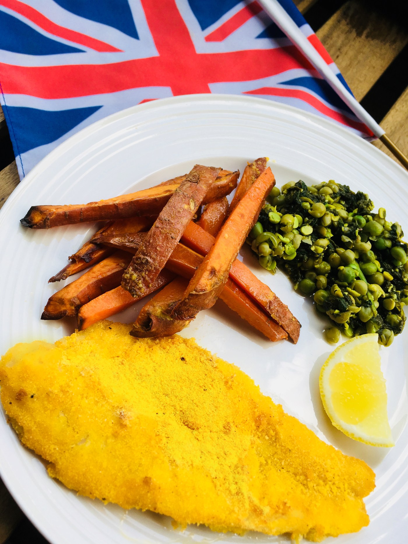 Le fish and chips est une institution ici en Angleterre, quel délice lorsqu’il est préparé avec un bon filet de poisson frais et des frites maison. Par contre, si vous faites attention à votre ligne, il ne vaut mieux pas en abuser! Pour pouvoir en profiter plus souvent, je vous ai concocté une version healthy de ce fish and chips traditionnel: des frites maison de patates douces au four, de bons filets de haddock frais recouverts d’une chapelure à base de polenta et une purée de petits pois frais (ou surgelés hors saison). Pour un peu de gourmandise supplémentaire, vous pouvez préparer une mayonnaise maison, régal assuré!