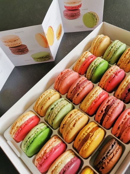 En grande amatrice de macarons (ah bon?), j’ai débuté ma dégustation par ce coffret haut en couleurs. Chocolat, yaourt-fraise, cassis, … toute la famille a trouvé son bonheur! Pour ma part, coup de cœur absolu pour le macaron à la noisette: une texture parfaite, si fondante! Les macarons ont beau être des petits bijoux fragiles, ils vous arriveront en parfait état, envoi testé et approuvé! 12, 16 ou 24 macarons, assortiments fruités ou incontournables de la maison, en coffrets ou en pyramides, il ne vous reste plus qu’à vous décider et, en un clic, à commander votre coffret macarons.