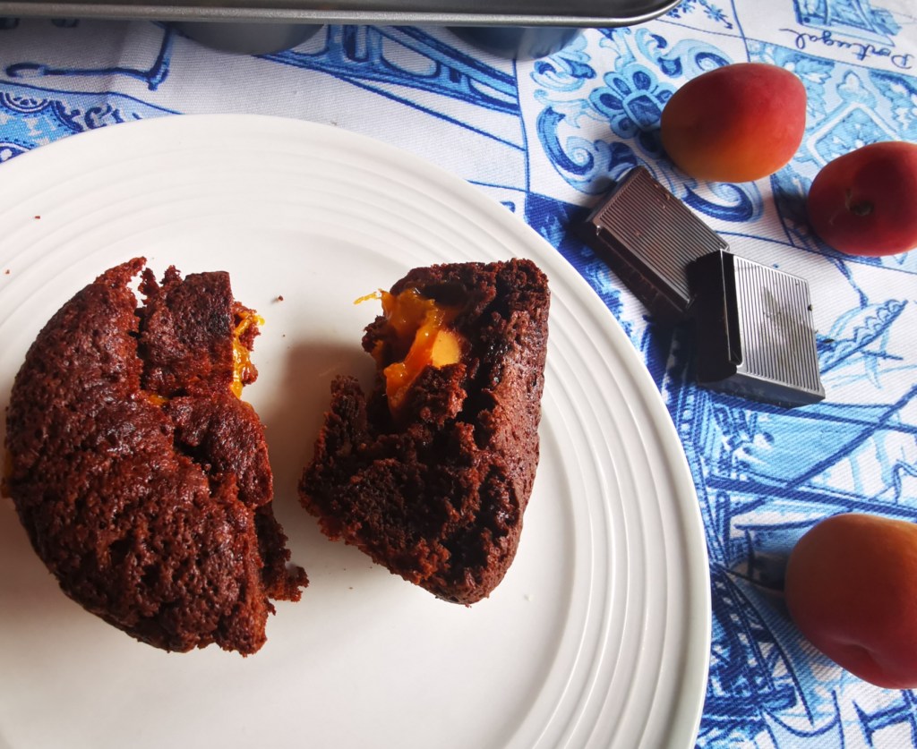 Est-ce moi ou depuis ma dernière recette du début de semaine, nous sommes passés de l’été à l’automne de façon un peu brutale? J’espère que les températures vont remonter un peu pour prolonger l’été, et ses bienfaits sur le corps et le moral! En attendant, je vous sers un peu de réconfort avec ces petits moelleux au chocolat et à l’abricot.
