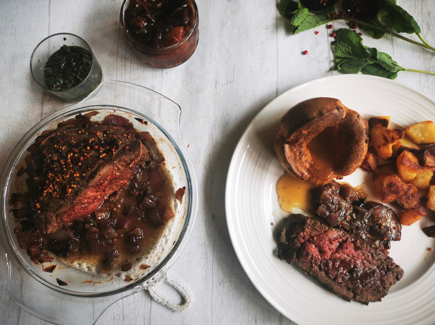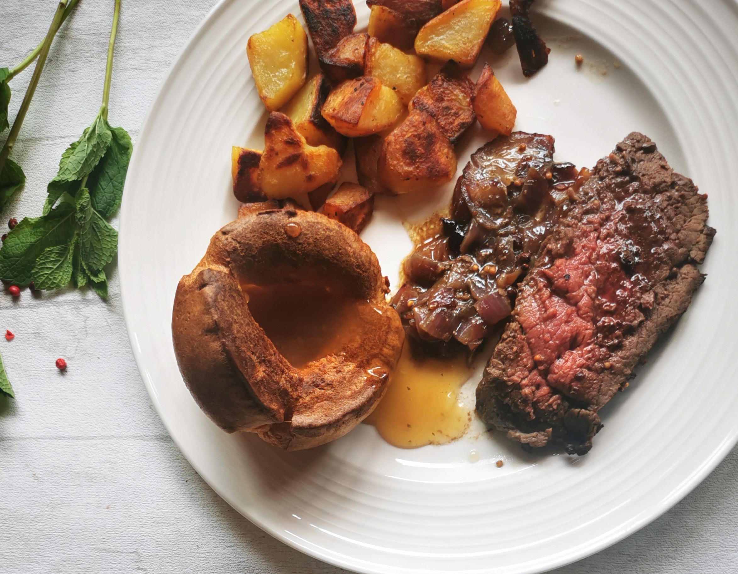 Aujourd’hui nous sommes dimanche, et s’il y a une tradition anglaise que nous adorons, c’est le « Sunday roast ». Ce repas est sans doute la meilleure manière de profiter de précieux moments dominicaux, que ce soit à la maison ou au restaurant, en amoureux, en famille ou entre amis. Même si le Sunday roast peut se décliner en de nombreuses combinaisons selon la viande et la sauce utilisée, ce plat est en général composé d’une viande rôtie (ou une déclinaison végétarienne dont je vous parlerai dans un article à venir), de pommes de terre bien dorées (ou d’autres légumes comme des carottes ou des choux fleurs), d’un yorkshire pudding (un pudding salé très aéré type pâte à chou, en forme de coupelle pour y verser la sauce qui accompagne le roast) et d’une sauce au jus/bouillon de viande (ou gravy).