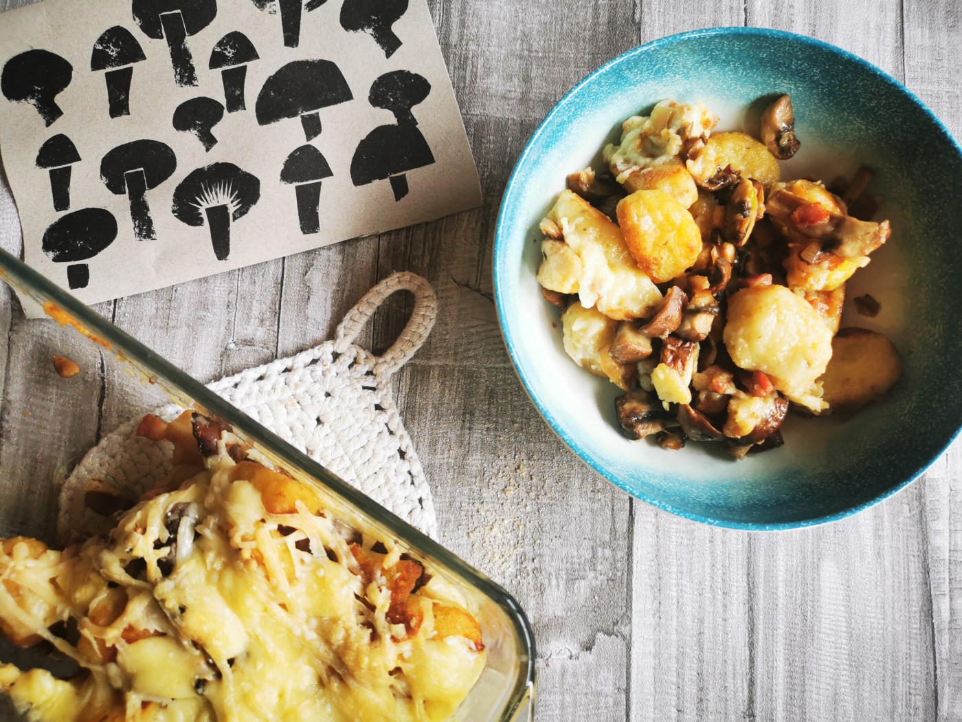 Gnocchis maison gratinés à la pancetta et aux champignons