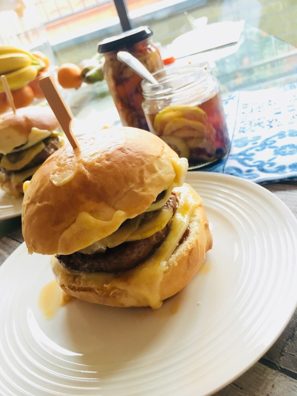 Ce week-end, j'avais envie de prendre le temps de préparer du bon pain maison et de tester la farine d'épeautre! C'était l'occasion toute trouvée pour manger de bons burgers rustiques: de la bonne viande, des feuilles de verdure, des pickles de légumes et du cheddar affiné bien coulant, ça vous tente?