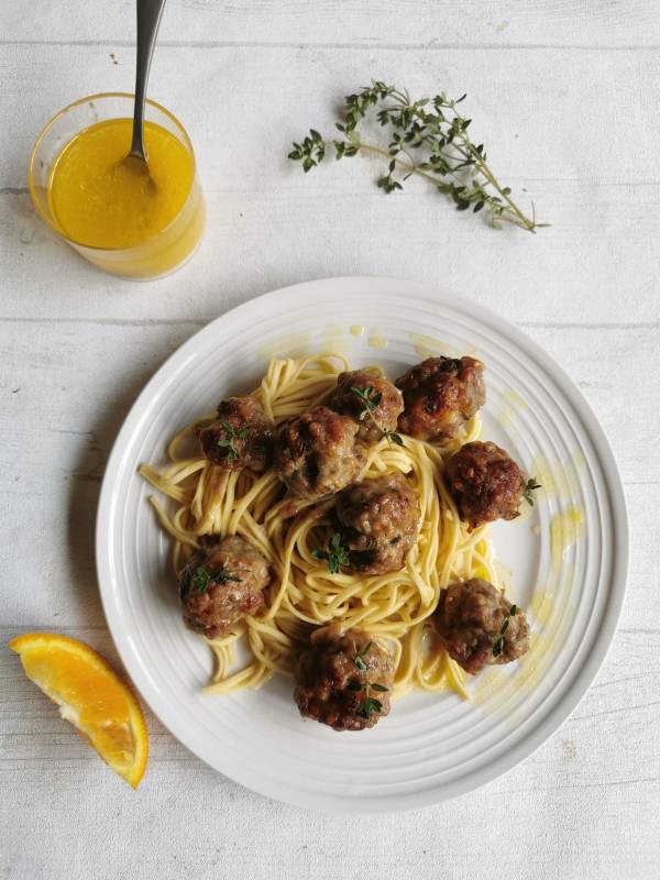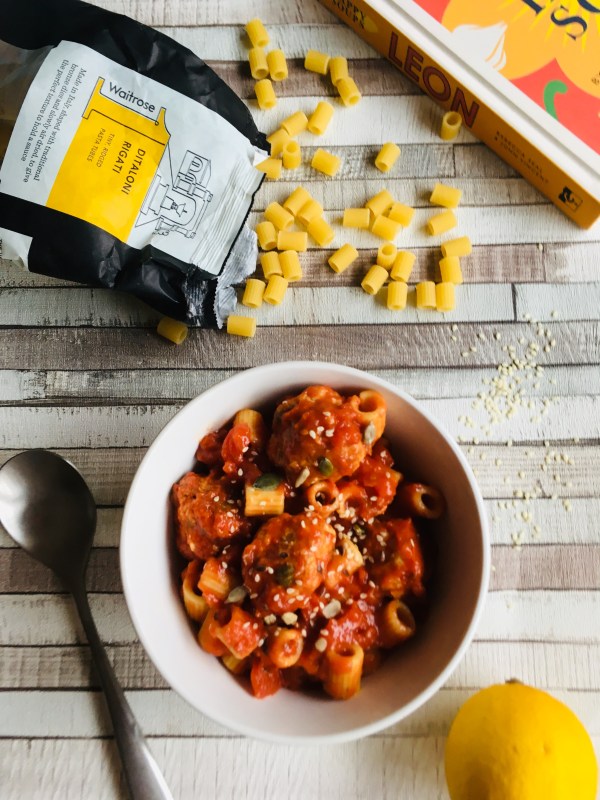 De bonnes boulettes de poulet confectionnées à la main, des pâtes originales: les ditalini (j'adore leur forme! Bien évidemment, vous pouvez les remplacer par d'autres petites pâtes si vous le souhaitez), de bonnes tomates (ou des tomates de bonnes qualité en conserve hors saison comme maintenant) et le tour est joué. En un rien de temps, vous voilà avec un repas délicieux et peu coûteux, idéal pour les derniers jours frais de la saison, en attendant le soleil.